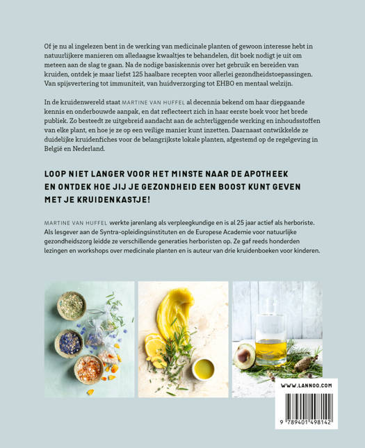 Of je nu al ingelezen bent in de werking van medicinale planten of gewoon interesse hebt in natuurlijkere manieren om alledaagse kwaaltjes te behandelen, dit boek nodigt je uit om meteen aan de slag te gaan. Na de nodige basiskennis over het gebruik en bereiden van kruiden, ontdek je maar liefst 125 haalbare recepten voor allerlei gezondheidstoepassingen. Van spijsvertering tot immuniteit, van huidverzorging tot EHBO en mentaal welzijn.