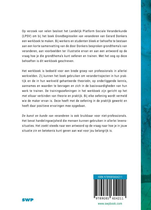 Op verzoek van velen uit den lande besloot het Landelijk Platform Sociale Veranderkunde (LPSV) om bij het boek 'Grondbeginselen van veranderen' van Gerard Donkers een werkboek te maken. Bij werkers en studenten bleek er behoefte te bestaan aan een korte samenvatting van de door Donkers besproken grondthema’s van veranderen, aan voorbeelden ter illustratie ervan en aan een antwoord op de vraag hoe je die grondthema’s kunt oefenen en trainen. Met het oog op deze behoeften is dit werkboek geschreven.