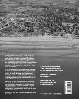 VOLLEDIG PANORAMA VAN DE BELGISCHE KUST IN 50 LOPENDE METER LUCHTFOTO’S 800 VERKLARENDE HOTSPOTS UNIEKE KIJK OP ATLANTIKWALL EN KUSTERFGOED Om alle details tot hun recht te laten komen is er gekozen voor een groot formaat boek, waardoor de beelden op 60 cm breedte en 38 cm hoogte weergegeven zijn (dubbele pagina), heel indrukwekkend.