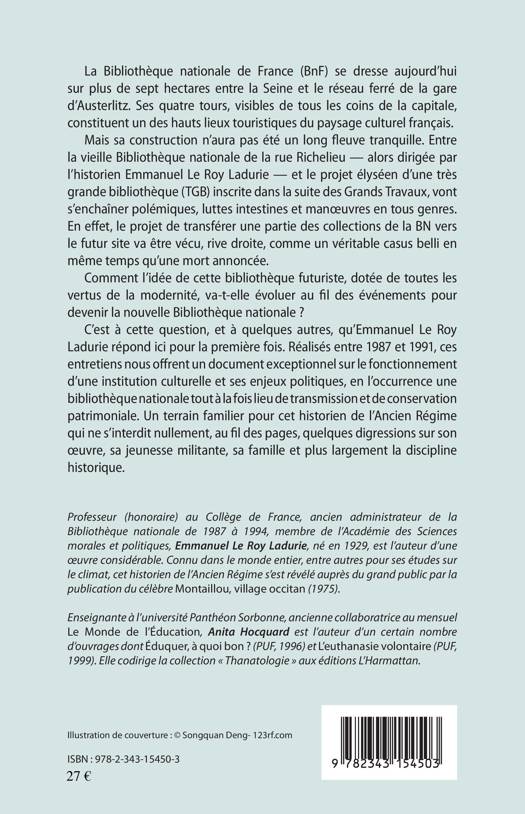 La construction de la Bibliothèque nationale de France (BnF) n'a pas été un long fleuve tranquille. Entre la vieille Bibliothèque nationale de la rue Richelieu - dirigée par l'historien Emmanuel Le Roy Ladurie - et le projet élyséen d'une très grande bibliothèque (TGB), inscrite dans la suite des Grands Travaux, vont s'enchaîner les polémiques et les luttes intestines. Comment l'idée de cette bibliothèque futuriste, dotée de toutes les vertus de la modernité, va-t-elle évoluer au fil des événements pour devenir la nouvelle Bibliothèque nationale ? Ces entretiens nous permettent de saisir le fonctionnement de cette institution, symbole de l'esprit culturel français.