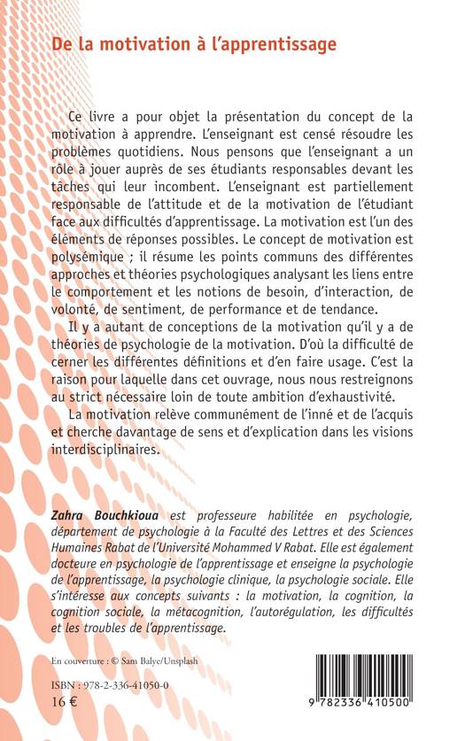 Ce livre a pour objet la présentation du concept de la motivation à apprendre. L'enseignant est censé résoudre les problèmes quotidiens. Nous pensons que l'enseignant a un rôle à jouer auprès de ses étudiants responsables devant les tâches qui leur incombent. L'enseignant est partiellement responsable de l'attitude et de la motivation de l'étudiant face aux difficultés d'apprentissage. La motivation est l'un des éléments de réponses possibles. Le concept de motivation est polysémique; il résume les points communs des différentes approches et théories psychologiques analysant les liens entre le comportement et les notions de besoin, d'interaction, de volonté, de sentiment, de performance et de tendance. Il y a autant de conceptions de la motivation qu'il y a de théories de psychologie de la motivation. D'où la difficulté de cerner les différentes définitions et d'en faire usage. C'est la raison pour laquelle dans cet ouvrage, nous nous restreignons au strict nécessaire loin de toute ambition d'exhaustivité. La motivation relève communément de l'inné et de l'acquis et cherche davantage de sens et d'explication dans les visions interdisciplinaires.
