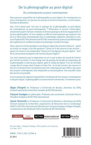 Que s'est-il passé pour l'art par ce passage de la photographie au post-digital, du contemporain au post-contemporain ? Théoriciens et artistes s'interrogent, notamment à partir de leurs créations et de leurs pratiques, de leurs engagements et de leurs philosophies. Qu'en est-il à l'ère du digital, voire du post-digital des artistes et des arts - quant au travail, au voyage, à l'art des premiers ? Qu'en est-il des oeuvres et des artistes - quant à la vision et à la temporalité ? Qu'en est-il de la conservation du digital et de l'arrivée du post-digital ? Ce livre permet de repenser l'aujourd'hui et le demain de l'art, du post-contemporain et du post-digital.