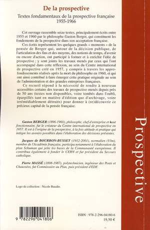Cet ouvrage rassemble seize textes écrits entre 1955 et 1960 par le philosophe Gaston Berger. Ils constituent les fondements de la prospective dans son acception française. Y sont joints les travaux menés par ceux qui l'ont accompagné dans cette réflexion au Centre international de prospective crée en 1957. Voici rassemblés et rendus accessibles des textes pour donner à redécouvrir ce précieux capital de la pensée française.