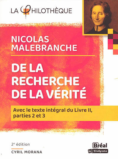 Lire et comprendre une œuvre. Cet ouvrage a pour ambition de donner aux étudiants à la fois une vue d'ensemble, indispensable pour comprendre les enjeux philosophiques, et les outils pour lire et comprendre un texte précis. Pour cela, l'élève dispose des éléments de lecture et d'analyse de l'œuvre dans son ensemble, du texte intégral du Livre II (parties 2 et 3) de De la recherche de la vérité de Malebranche, de différents outils (glossaire, bibliographie) lui permettant d'adapter sa lecture à ses besoins.