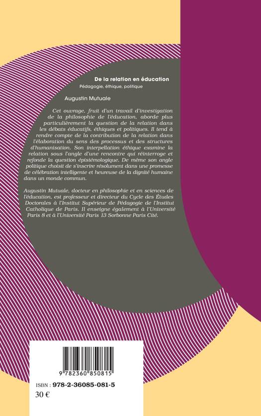 Cet ouvrage, fruit d'un travail d'investigation de la philosophie de l'éducation, aborde plus particulièrement la question de la relation dans les débats éducatifs, éthiques et politiques. Il tend à rendre compte de la contribution de la relation dans l'élaboration du sens des processus et des structures d'humanisation. Son interpellation éthique examine la relation sous l'angle d'une rencontre qui réinterroge et refonde la question épistémologique. De même, son angle politique choisit de s'inscrire résolument dans une promesse de célébration intelligente et heureuse de la dignité humaine dans un monde commun.
