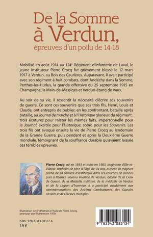 Août 1914, alors jeune instituteur à Laval, Pierre Crocq se retrouve comme toute une génération d'hommes, pris dans l'horreur de la guerre. Au soir de sa vie il ressent la nécessité d'écrire ses souvenirs de guerre. Ce sont ces mémoires-là que ses trois fils ont entrepris de publier, en les confrontant, bataille après bataille, à l'impersonnel Journal de marche et à l'exalté Historique Glorieux. Trois écritures pour relater les mêmes faits, pour mieux situer le destin d'un homme au milieu de la grande Histoire, celle de la Grande Guerre.