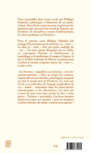 Voici rassemblés deux textes écrits par Philippe Dujardin, politologue, à l'attention de ses petits- enfants. Deux brefs contes moraux, inspirés par les questions qui ont nourri le travail de l'auteur, aux frontières de disciplines comme l'anthropologie, la science politique ou l'histoire...