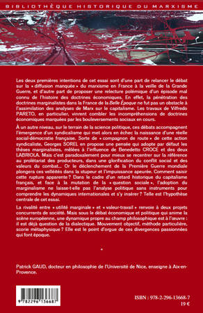 Cet essai veut relancer le débat sur la diffusion manquée du marxisme en France à la veille de la Grande Guerre. Et montrer que si 1914 prend au dépourvu les forces syndicalistes, c'est aussi parce qu'elles renoncent aux outils analytiques du Capital pour adopter le marginalisme. G. Sorel devient ici exemplaire de cette approche privant l'action politique des moyens de traduire les relations internationales en une stratégie capable de s'orienter dans le retard manifeste du capitalisme français.