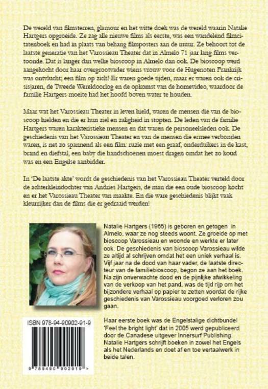 De kleurrijke wereld van filmsterren, glamour en het witte doek was de wereld waarin Natalie Hartgers opgroeide. Ze zag alle nieuwe films als eerste, was een wandelend filmcitatenboek en had in plaats van behang filmposters aan de muur. Natalie Hartgers behoort tot de laatste generatie van het Varossieau Theater; de bioscoop die maar liefst 71 jaar in Almelo films vertoonde voor de bioscoopbezoekers. Dat is langer dan welke bioscoop in Almelo dan ook.