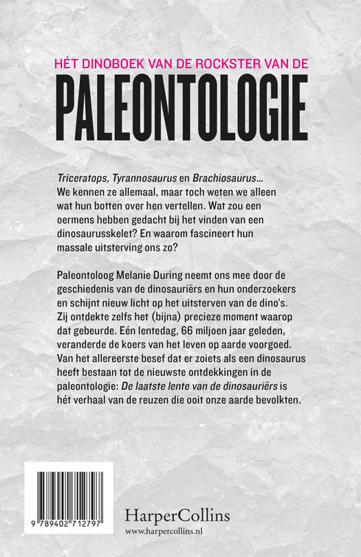 Paleontoloog Melanie During neemt ons mee door de geschiedenis van de dinosauriërs en hun onderzoekers en schijnt nieuw licht op het uitsterven van de dino’s. Zij ontdekte zelfs het (bijna) precieze moment waarop dat gebeurde. Eén lentedag, 66 miljoen jaar geleden, veranderde de koers van het leven op aarde voorgoed. Van het allereerste besef dat er zoiets als een dinosaurus heeft bestaan tot de nieuwste ontdekkingen in de paleontologie: De laatste lente van de dinosauriërs is hét verhaal van de reuzen die ooit onze aarde bevolkten.