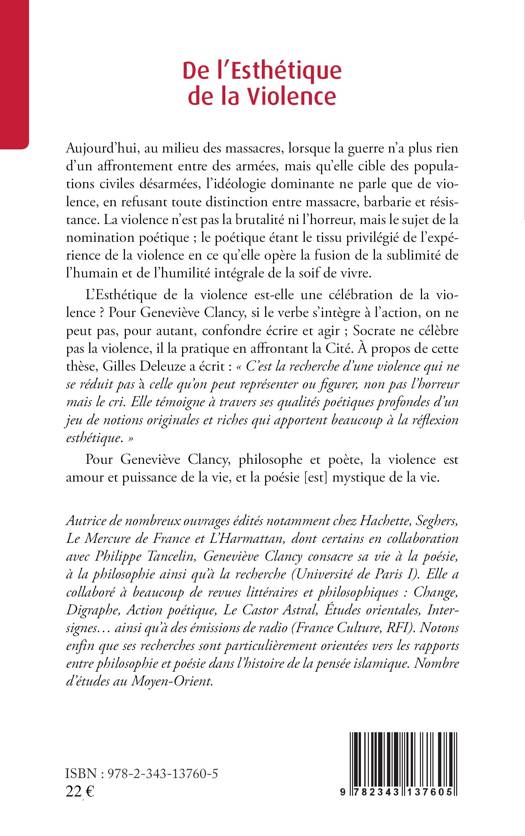 L'Esthétique de la Violence est-elle une célébration de la violence ? Pour l'auteure, si le verbe s'intègre à l'action, on ne peut pas pour autant, confondre agir et écrire. La violence est amour et puissance de la vie et la poésie est mystique de la vie.