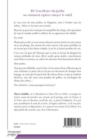 Je vous écris de mon jardin, en Magnésie, assis à l'ombre sous les arbres... Mais ce n'est pas une retraite. Bien sûr, je peux être tenté par la tranquillité du refuge, alors qu'autour de nous le monde semble se défaire de ses apparences de solidité. Plutôt qu'un asile, je veux trouver dans le contact étroit avec une nature où je me plonge, des raisons de croire à des jours paisibles. C'est vrai, j'ai peur de l'homme qui va mal, et j'essaie de désigner les raisons profondes de mon effroi, tandis qu'au jardin, concrètement entre fleurs et tomates, je cultive les charmes d'un humanisme décrié.