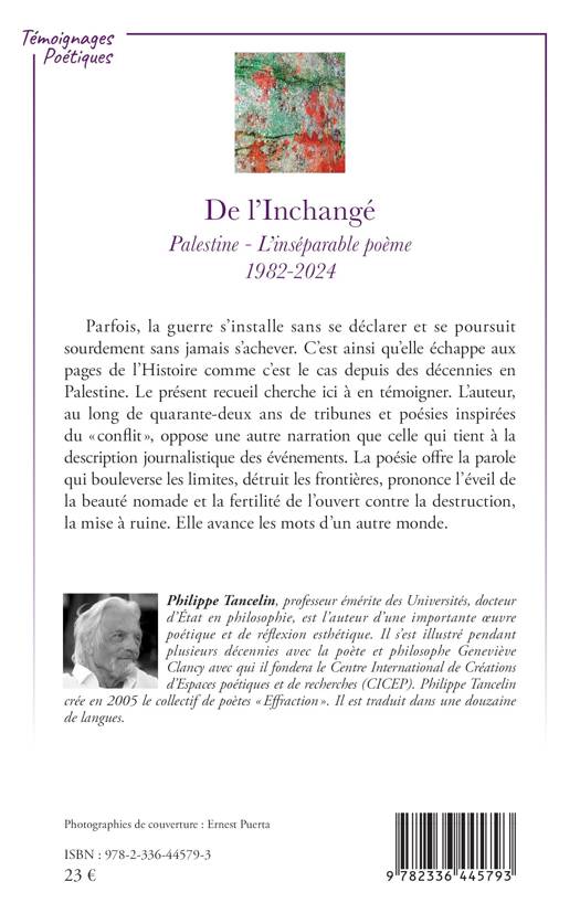 Parfois, la guerre s’installe sans se déclarer et se poursuit sourdement sans jamais s’achever. C’est ainsi qu’elle échappe aux pages de l’Histoire comme c’est le cas depuis des décennies en Palestine. Le présent recueil cherche ici à en témoigner. L’auteur, au long de quarante-deux ans de tribunes et poésies inspirées du « conflit », oppose une autre narration que celle qui tient à la description journalistique des événements. La poésie offre la parole qui bouleverse les limites, détruit les frontières, prononce l’éveil de la beauté nomade et la fertilité de l’ouvert contre la destruction, la mise à ruine. Elle avance les mots d’un autre monde.