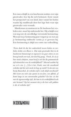 Een man schrijft in een lunchroom notities over zijn grootvader, hoe hij die zich herinnert. Eerst vanuit het perspectief van een kind, later vanuit het heden waarin hij ronddwaalt door het lege huis waar zijn grootvader ooit woonde. Hans Muiderman reconstrueert in De lunchroom het verleden niet, maar hij onderzoekt het. Hij schrijft over wat nog rest: de onvolledige vervormde herinnering. Wat niet in je herinnering past vergeet je en wat aan je herinnering ontbreekt verzin je er gewoon bij. Een herinnering is altijd een vorm van verbeelding.