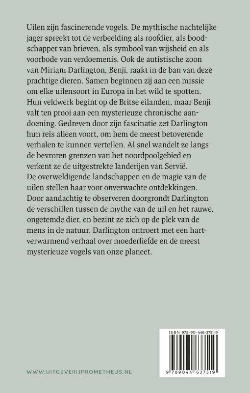 Uilen zijn fascinerende vogels. De mythische nachtelijke jager spreekt tot de verbeelding als roofdier, als boodschapper van brieven, als symbool van wijsheid en als voorbode van verdoemenis. Ook de autistische zoon van Miriam Darlington, Benji, raakt in de ban van deze prachtige dieren. Samen beginnen zij aan een missie om elke uilensoort in Europa in het wild te spotten.
