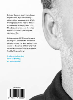 Een man die iedereen lijkt te kennen, hij ziet er aan de buitenkant althans altijd hetzelfde uit, redt het niet meer. Hij ziet een wereld die zijn ding doet binnen een mentale vissenkom, waar hij van buiten af naar kijkt, maar niet naar binnen kan. Hij begrijpt de bewegingen van de mensen en alles wat daarachter ligt niet goed, wat soms een intense woede bij hem teweegbrengt. Hij krijgt het dan zo benauwd dat hij rood aanloopt en denkt te stikken. Op die momenten laat ook de taal hem in de steek en brengt hij nog slechts klanken uit. Er is een reden voor dit alles: autisme. Sinds de man weet dat dat label op hem is geplakt, probeert hij een nieuwe wereld te maken, een waarin hij past. Daarover gaan deze intense, kraakheldere gedichten.