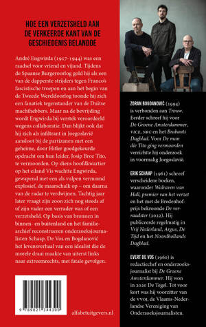 André Engwirda (1917-1944) was een raadsel voor vriend en vijand. Tijdens de Spaanse Burgeroorlog gold hij als een van de dapperste strijders tegen Franco’s fascistische troepen en aan het begin van de Tweede Wereldoorlog toonde hij zich een fanatiek tegenstander van de Duitse machthebbers. Maar na de bevrijding wordt Engwirda bij verstek veroordeeld wegens collaboratie. Dan blijkt ook dat hij zich als infiltrant in Joegoslavië aansloot bij de partizanen met een geheime, door Hitler goedgekeurde opdracht om hun leider, Josip Broz Tito, te vermoorden. Op diens hoofdkwartier op het eiland Vis wachtte Engwirda, gewapend met een als vulpen vermomd explosief, de maarschalk op – om daarna van de radar te verdwijnen. Tachtig jaar later vraagt zijn zoon zich nog steeds af of zijn vader een verrader was of een verzetsheld. Op basis van bronnen in binnen- en buitenland en het familiearchief reconstrueren de onderzoeksjournalisten Schaap, De Vos en Bogdanović het levensverhaal van een idealist die de morele draai maakte van uiterst links naar extreemrechts, met fatale gevolgen.