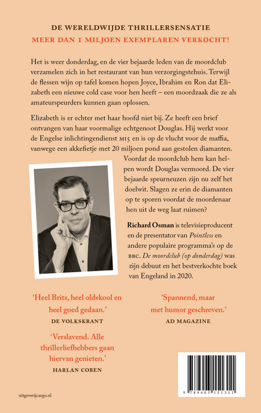 Het is weer donderdag, en de vier bejaarde leden van de moordclub verzamelen zich in het restaurant van hun verzorgingstehuis. Terwijl de flessen wijn op tafel komen hopen Joyce, Ibrahim en Ron dat Elizabeth een nieuwe cold case voor hen heeft – een moordzaak die ze als amateurspeurders kunnen gaan oplossen. Elizabeth is er echter met haar hoofd niet bij. Ze heeft een brief ontvangen van haar voormalige echtgenoot Douglas. Hij werkt voor de Engelse inlichtingendienst en is op de vlucht voor de maffia, vanwege een akkefietje met 20 miljoen pond aan gestolen diamanten