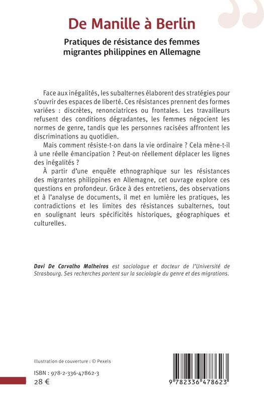 Face aux inégalités, les subalternes élaborent des stratégies pour s'ouvrir des espaces de liberté. Ces résistances prennent des formes variées: discrètes, renonciatrices ou frontales. Les travailleurs refusent des conditions dégradantes, les femmes négocient les normes de genre, tandis que les personnes racisées affrontent les discriminations au quotidien. Mais comment résiste-t-on dans la vie ordinaire ? Cela mène-t-il à une réelle émancipation ? Peut-on réellement déplacer les lignes des inégalités ? À partir d'une enquête ethnographique sur les résistances des migrantes philippines en Allemagne, cet ouvrage explore ces questions en profondeur. Grâce à des entretiens, des observations et à l'analyse de documents, il met en lumière les pratiques, les contradictions et les limites des résistances subalternes, tout en soulignant leurs spécificités historiques, géographiques et culturelles.