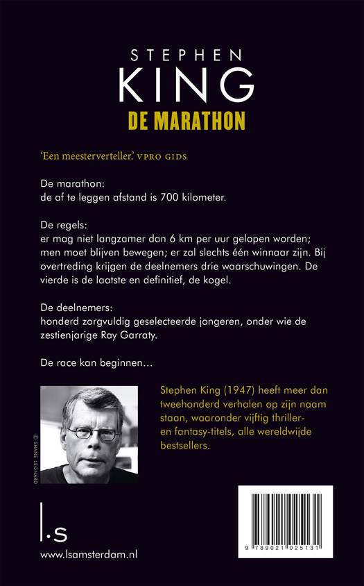 De marathon, de bestseller van meesterverteller Stephen King, gaat over de langste en dodelijkste afvalrace ooit waarbij slechts één deelnemer kan winnen.