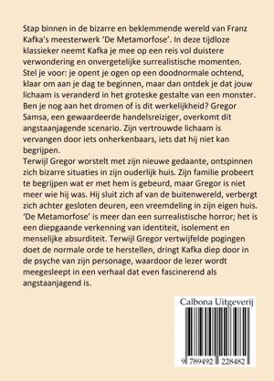 Het zal je maar gebeuren, als je op een ochtend wakker wordt en ontdekt dat jouw lichaam tijdens je slaap is veranderd in het lichaam van een monster. Is het een nachtmerrie en slaap je nog, of ben je echt wakker? Je kijkt nog eens goed onder de dekens en constateert dat je benen zijn verdwenen, twee rijen pootjes zijn daarvoor in de plaats gekomen. Je buik is bruin en gepantserd. Ben je een mega insect? Je probeert uit bed te komen maar met handen en voeten gaat het beter. Toch wil hij zijn bed uit, hij moet toch naar zijn werk.