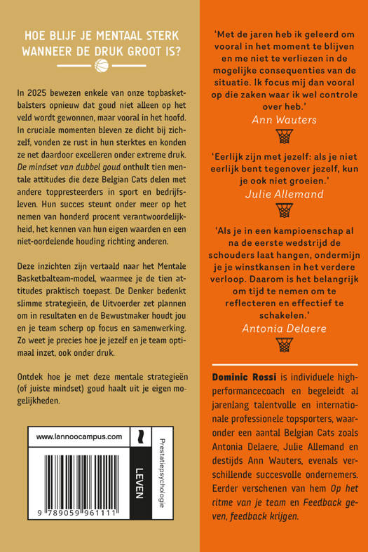 De mindset van dubbel goud onthult tien mentale attitudes die deze Belgian Cats delen met andere toppresteerders in sport en bedrijfsleven. Hun succes steunt onder meer op het nemen van honderd procent verantwoordelijkheid, het kennen van hun eigen waarden en een niet-oordelende houding richting anderen.