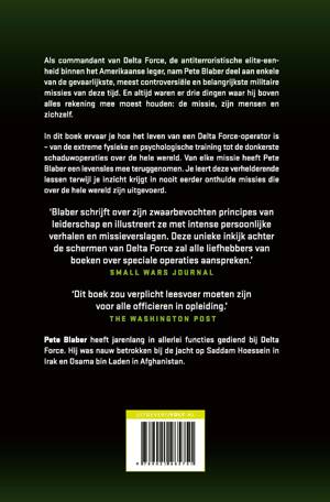 ‘Blaber schrijft over zijn zwaarbevochten principes van leiderschap en illustreert ze met intense persoonlijke verhalen en missieverslagen. Deze unieke inkijk achter de schermen van Delta Force zal alle liefhebbers van boeken over speciale operaties aanspreken.’ – Small Wars Journal