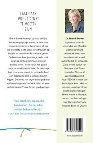 `Brené Brown pakt moedig alle duistere emoties aan die de weg naar een voller leven belemmeren. Lees dit boek en wordt aangestoken door haar moed. Daniel H. Pink