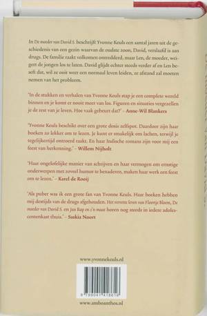 Yvonne Keuls beschrijft een aantal jaren uit de geschiedenis van een gezin waarvan de oudste zoon, David, verslaafd is aan drugs. De familie raakt volkomen ontredderd, maar Len, de moeder, weigert haar zoon los te laten. Wanneer ze hem steeds verder ziet afglijden beseft Len dat, wil ze ooit weer een normaal leven leiden, ze afstand zal moeten nemen van haar zoon. De hoofdpersonen in de beroemde sociale romans van Yvonne Keuls, waarvan 'De moeder van David S.' er één is, zijn sterke figuren die in een ellendige situatie terecht zijn gekomen. 'Als puber was ik een groot fan van Yvonne Keuls. Haar boeken hebben mij destijds van de drugs afgehouden.' – Saskia Noort 'Yvonne Keuls schrijft van de straat en recht in je gezicht.' – Toine Heijmans