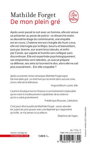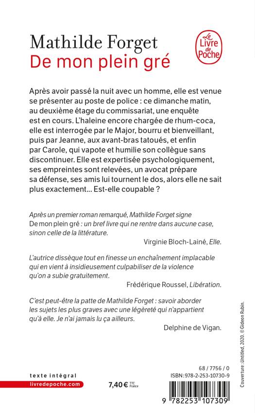 Après un roman très remarqué, Mathilde Forget signe De mon plein gré : un bref livre qui ne rentre dans aucune case, sinon celle de la littérature. Virginie Bloch-Lainé, Elle.