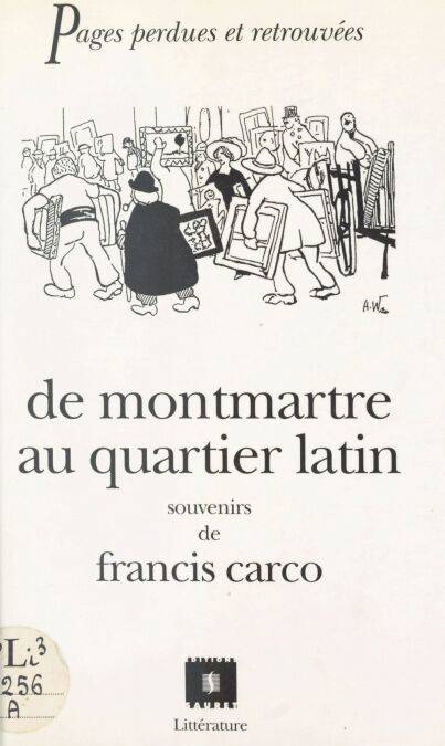 « De Montmartre au Quartier Latin » nous plonge au cœur du Paris littéraire et artistique d’avant la Grande Guerre : d’un côté, ceux de la Butte (Bruant, Lautrec, Degas, Picasso, Utrillo), de l’autre, les « Montparnos » (Apollinaire, Matisse, Derain, Paul Fort...). Ici comme là-haut, on paye ses consommations d’un croquis ou d’une chanson. Viennent les années vingt. Certaines voix se sont tues. Apollinaire, grièvement blessé à la guerre, a été emporté par la grippe espagnole et Modigliani est mort dans la misère. Francis Carco, comme ses amis Max Jacob, Blaise Cendrars, Dorgelès ou Mac Orlan, a eu plus de chance : son talent commence à être reconnu, et l’écrivain se souvient des beaux jours où, dans sa mansarde du quai aux Fleurs, il n’avait pour toute richesse que quelques toiles de Modigliani, dont personne ne voulait... Un savoureux recueil de souvenirs écrit en 1925 par Francis Carco, poète, romancier, et membre de l’Académie Goncourt dès 1937.