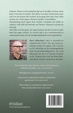 Als Therese in het ziekenhuis ligt om te bevallen van haar eerste kind, is het erop of eronder. Niet alleen voor haar en haar kind, maar ook voor de mensen die wachten op de gang: haar man, haar vader en haar zus, het zwarte schaap van de familie. Want Agnes, Thereses moeder, is onvindbaar. Maandenlang heeft Agnes haar dochter overladen met liefde en cadeaus, om vast te houden wat onvermijdelijk verloren zou gaan. Waarom is ze juist nu afwezig? En is ze, na alles wat gebeurd is, nog welkom bij degenen die ze meer liefheeft dan wie ook? Een beklemmende roman – maar niet zonder momenten van licht – over de onontkoombaarheid van het gezinsleven.