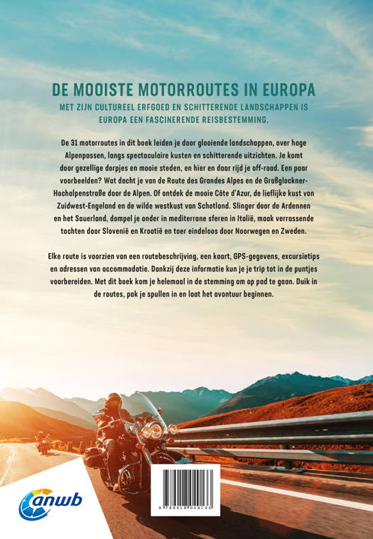 De 31 motorroutes in dit boek leiden je door glooiende landschappen, over hoge Alpenpassen, langs spectaculaire kusten en schitterende uitzichten. Je komt door gezellige dorpjes en mooie steden, en hier en daar rijd je off-road. Een paar voorbeelden? Wat dacht je van de Route des Grandes Alpes en de Großglockner-Hochalpenstraße door de Alpen. Of ontdek de mooie Côte d’Azur, de lieflijke kust van Zuidwest-Engeland en de wilde westkust van Schotland. Slinger door de Ardennen en het Sauerland, dompel je onder in mediterrane sferen in Italië, maak verrassende tochten door Slovenië en Kroatië en toer eindeloos door Noorwegen en Zweden.