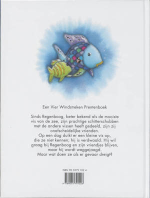 Sinds Regenboog zijn prachtige glinsterschubben met de andere vissen heeft gedeeld, zijn zij onafscheidelijke vrienden. Op een dag duikt er een kleine vis op, die ze niet kennen; hij is verdwaald. Hij wil graag bij Regenboog en zijn vriendjes blijven, maar hij wordt weggejaagd. Maar wat doen ze als er gevaar dreigt?