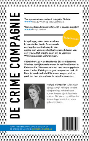 September 1927: de Haarlemse Ella van Borssum Waalkes verblijft enkele weken in het Familiehotel in Paterswolde. Wanneer ze hoort over de onopgeloste moord in het Kluivingsbos gaat ze op onderzoek uit. Maar iemand vindt dat Ella te veel vragen stelt en gaat wel heel ver om haar de mond te snoeren