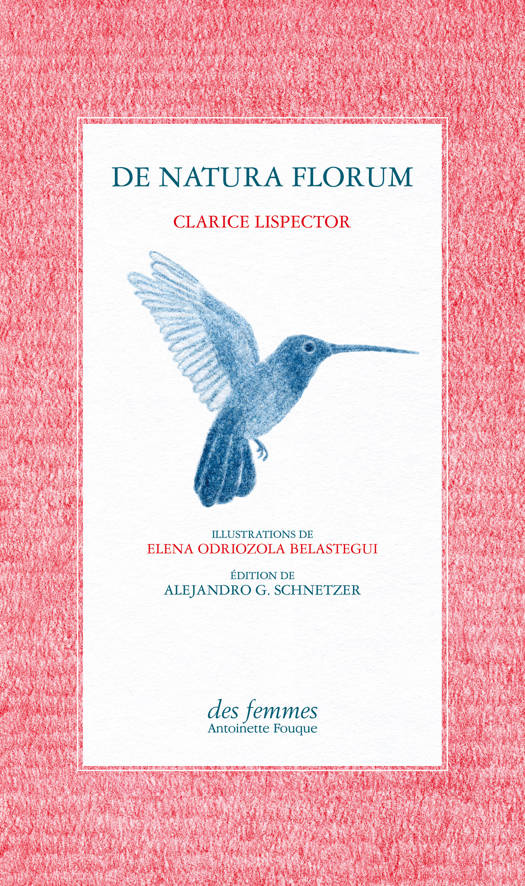 Le texte "De natura florum" est structuré comme un herbier en prose, personnel et poétique. À partir de vingt-cinq entrées, partant du plus général vers le plus singulier, Clarice Lispector évoque d'abord des définitions botaniques puis décrit vingt fleurs, rose, violette, tournesol... qu'elle admire avec une grande sensibilité. Initialement publié le 3 avril 1971 dans le "Jornal do Brasil" de Rio de Janeiro puis retravaillé pour "Água Viva" (1973) et inclus ensuite dans le volume "A Descoberta do Mundo" (« La Découverte du monde ») en 1984, "De natura florum" trouve dans cette édition une nouvelle vie. L'herbier de Clarice Lispector est à l'image de son autrice : fin et audacieux. Les illustrations d'Elena Odriozola Belastegui apportent au texte une douceur juvénile. L'ouvrage unique, original et singulier que constitue "De natura florum" vient enrichir le cycle de publication de l'oeuvre de Clarice Lispector au sein des éditions des femmes-Antoinette Fouque.