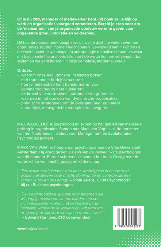 Dit baanbrekende boek daagt alles uit wat je dacht te weten over hoe organisaties zouden moeten functioneren. Gewapend met inzichten uit de evolutionaire psychologie onthullen de auteurs waarom traditionele hiërarchieën falen en hoe we ze kunnen vervangen door systemen die echt floreren in onze complexe wereld. Of je nu CEO, manager of werknemer bent, dit boek zal je kijk op werk en organisaties voorgoed veranderen.