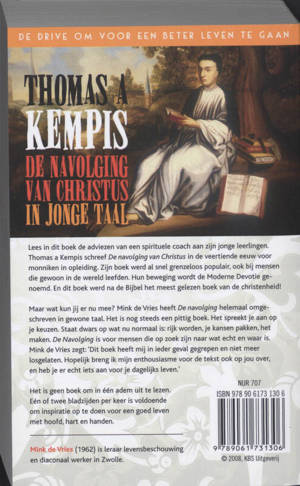 Thomas a Kempis Hertaald door Mink de Vries Een klassieker in een hip jasje. Het bekendste werk uit de Moderne Devotie en het meeste gelezen boek na de Bijbel nu in een nieuwe hertaling. Makkelijk leesbaar voor jong en oud. Vol praktische spreuken om je leven richting te geven.