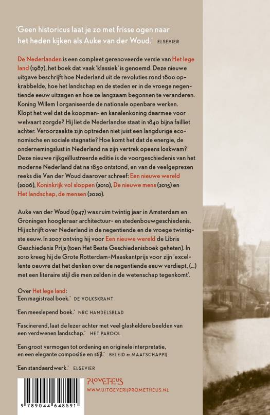De Nederlanden is een compleet gerenoveerde versie van Het lege land (1987), het boek dat vaak ‘klassiek’ is genoemd. Deze nieuwe uitgave beschrijft hoe Nederland uit de revoluties rond 1800 opkrabbelde, hoe het landschap en de steden er in de vroege negentiende eeuw uitzagen en hoe ze langzaam begonnen te veranderen. Koning Willem I organiseerde de nationale openbare werken. Klopt het wel dat de koopman- en kanalenkoning daarmee voor welvaart zorgde? Hij liet de Nederlandse staat in 1840 bijna failliet achter. Veroorzaakte zijn optreden niet juist een langdurige economische en sociale stagnatie? Hoe komt het dat de energie, de ondernemingslust in Nederland na zijn vertrek opeens loskwam? Deze nieuwe rijkgeïllustreerde editie is de voorgeschiedenis van het moderne Nederland dat na 1850 ontstond, en van de veelgeprezen reeks die Van der Woud daarover schreef: Een nieuwe wereld (2006), Koninkrijk vol sloppen (2010), De nieuwe mens (2015) en Het landschap, de mensen (2020).