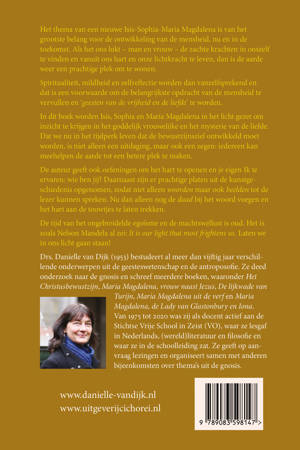 Het thema van een nieuwe Isis-Sophia-Maria Magdalena is van het grootste belang voor de ontwikkeling van de mensheid, nu en in de toekomst. Als het ons lukt – man en vrouw – de zachte krachten in onszelf te vinden en vanuit ons hart en onze lichtkracht te leven, dan is de aarde weer een prachtige plek om te wonen. Spiritualiteit, mildheid en zelfreflectie worden dan vanzelfsprekend en dat is een voorwaarde om de belangrijkste opdracht van de mensheid te vervullen en ‘geesten van de vrijheid en de liefde’ te worden. In dit boek worden Isis, Sophia en Maria Magdalena in het licht gezet om inzicht te krijgen in het goddelijk vrouwelijke en het mysterie van de liefde. Dat we nu in het tijdperk leven dat de bewustzijnsziel ontwikkeld moet worden, is niet alleen een uitdaging, maar ook een zegen: iedereen kan meehelpen de aarde tot een betere plek te maken. De auteur geeft ook oefeningen om het hart te openen en je eigen Ik te ervaren: wie ben jij? Daarnaast zijn er prachtige platen uit de kunstgeschiedenis opgenomen, zodat niet alleen woorden maar ook beelden tot de lezer kunnen spreken. Nu dan alleen nog de daad bij het woord voegen en het hart aan de touwtjes te laten trekken. De tijd van het ongebreidelde egoïsme en de machtswellust is oud. Het is zoals Nelson Mandela al zei: It is our light that most frightens us. Laten we in ons licht gaan staan!