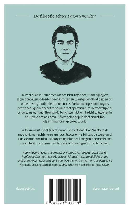 Journalistiek is verworden tot een ordinaire nieuwsfabriek, waar kijkcijfers, lezersaantallen, advertentie-inkomsten en winstgevendheid gelden als onbetwiste graadmeters voor succes. De bedoeling is om burgers permanent gebiologeerd te houden met spectaculaire, vermakelijke of anderszins aandachttrekkende berichten, niet om inzicht te kweken in de wereld om ons heen. Van genociden in Afghanistan tot de nieuwste haardracht van Gordon: alles wordt zonder enige maatstaf van publiek belang de ether ingeslingerd, als krachtvoer in een kippenhok vol doelloos zappende nieuwsconsumenten. Of iets belangrijk is doet er niet toe, als er maar over gepraat wordt. In De nieuwsfabriek fileert Rob Wijnberg de mechanismen achter deze aandachtseconomie. Op karakteristieke wijze legt hij de ware aard van de moderne nieuwsvoorziening bloot. Hoe ze in de ban is geraakt van doelgroepdenkers en marketeers. Hoe ze dwingt tot instant-opinies en visieloze politiek. En bovenal: hoe ze burgers ontmoedigt om na te denken. Wie De nieuwsfabriek heeft gelezen, zal nooit meer achteloos het journaal bekijken of een krant openslaan.
