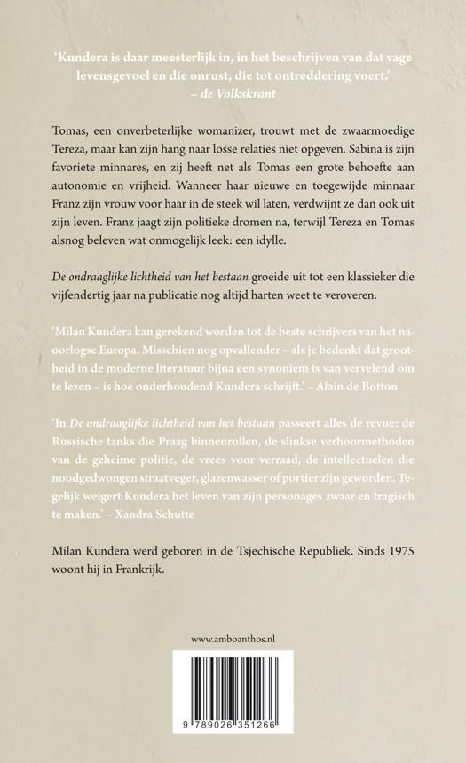 De ondraaglijke lichtheid van het bestaan betekende de internationale doorbraak van Milan Kundera. De succesvolle verfilming The Unbearable Lightness of Being door Philip Kaufman maakte eveneens een verpletterende indruk.