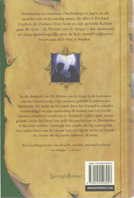 De toekomst van de laatste vrije mensen is in inktzwarte duisternis gehuld, ze staan op het punt door het kwaad te worden overweldigd en zijn onmachtig het ontstaan van een wrede nieuwe wereld te voorkomen. En Richard? Hij gaat zwaar gebukt onder het besef dat zelfs hij machteloos is. Bovendien moet hij leren leven met een extra last: het feit dat hij niet alles mag vertellen aan de enige vrouw van wie hij zielsveel houdt, de vrouw die hij heeft verloren... Kahlan.