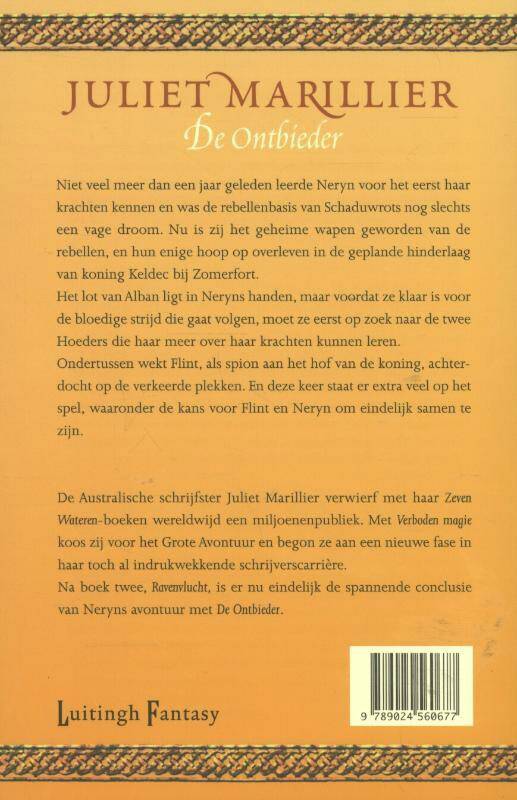 De Australische schrijfster Juliet Marillier verwierf met haar Zeven Wateren-boeken wereldwijd een miljoenenpubliek. Met Verboden magie koos zij voor het Grote Avontuur en begon ze aan een nieuwe fase in haar toch al indrukwekkende schrijverscarrière. Na Ravenvlucht, is er nu eindelijk de spannende conclusie van Neryns avontuur met De Ontbieder.