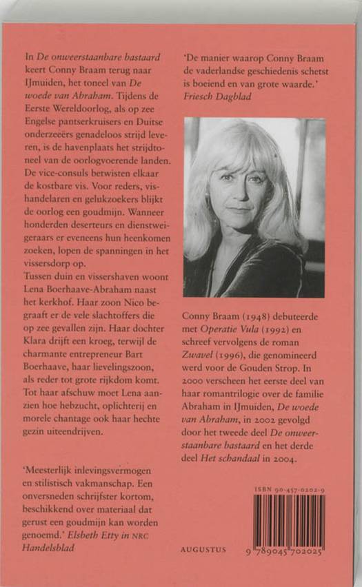 In De onweerstaanbare bastaard keert Conny Braam terug naar IJmuiden, het toneel van De woede van Abraham. Tijdens de Eerste Wereldoorlog, als op zee Engelse pantserkruisers en Duitse onderzeeërs genadeloos strijd leveren, is de havenplaats het strijdtoneel van de oorlogvoerende landen. De vice-consuls betwisten elkaar de kostbare vis. Voor reders, vishandelaren en gelukszoekers blijkt de oorlog een goudmijn. Wanneer honderden deserteurs en dienstweigeraars er eveneens hun heenkomen zoeken, lopen de spanningen in het vissersdorp op.