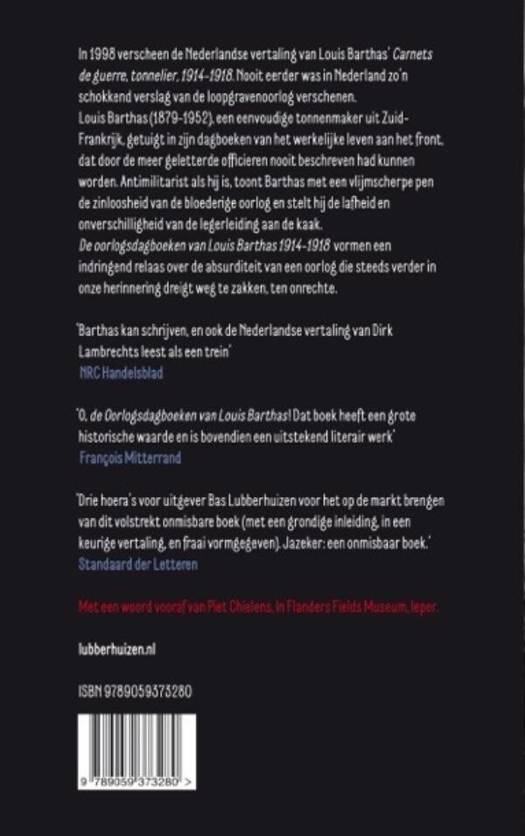 De oorlogsdagboeken van Louis Barthas vormen een indringend relaas over de absurditeit van een oorlog die ten onrechte steeds verder in onze herinnering dreigt weg te zakken. Louis Barthas (1879-1952), een eenvoudige tonnenmaker uit Peyriac in Zuid-Frankrijk, was een socialist van het eerste uur. Hoewel hij alleen lagere school had genoten, was hij een verwoed lezer van onder anderen Victor Hugo en Émile Zola. Als Barthas in 1914 onder de wapenen wordt geroepen is hij 35 jaar oud. Al gauw begint hij als een volleerd journalist verslag te doen van het dagelijkse leven in de loopgraven. Hij schrijft op elk stukje papier dat hij te pakken kan krijgen: schoolschriften, maar ook zelf bij elkaar genaaide blaadjes. Zijn thuisfront zendt hij talloze brieven, met het verzoek deze zorgvuldig te bewaren. Na de oorlog verwerkt hij zijn aantekeningen en brieven in negentien schriften. In zijn dagboeken getuigt Barthas van het werkelijke leven aan het front, dat door de meer geletterde officieren nooit beschreven had kunnen worden. Zij waren immers zelden aanwezig bij de gruwelijke gevechten om enkele meters modderige grond. Antimilitarist als hij is, toont Barthas met een vlijmscherpe pen de zinloosheid van deze bloederige loopgravenoorlog. In tegenstelling tot de officiële geschiedschrijving stelt hij de verblinding en de lafheid van de legerleiding en de misdadige onverschilligheid waarmee zij de gewone soldaat behandelde aan de kaak.