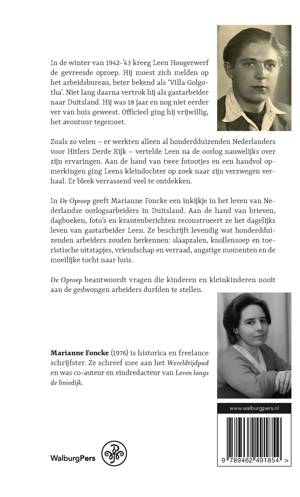 In 'De Oproep' geeft Marianne Foncke een inkijkje in het leven van Nederlandse oorlogsarbeiders in Duitsland. Aan de hand van brieven, dagboeken, foto's en krantenberichten reconstrueert ze het dagelijks leven van gastarbeider Leen. Ze beschrijft levendig wat honderdduizenden arbeiders zouden herkennen: slaapzalen, knollensoep en toeristische uitstapjes, vriendschap en verraad, angstige momenten en de moeilijke tocht naar huis.
