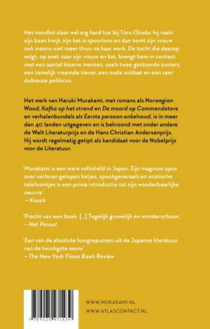 In 'De opwindvogelkronieken' van Haruki Murakami slaat het noodlot wel erg hard toe bij Toru Okada: hij raakt zijn baan kwijt, zijn kat is spoorloos en dan komt zijn vrouw ook ineens niet meer thuis na haar werk. De tocht die daarop volgt, op zoek naar zijn vrouw en kat, brengt hem in contact met een aantal bizarre mensen, zoals twee gestoorde zusters, een tamelijk vreemde tiener, een oude soldaat en een zeer dubieuze politicus. Het werk van Haruki Murakami, met romans als 'Norwegian Wood', 'Kafka op het strand' en 'De moord op Commendatore', en verhalenbundels als 'Eerste persoon enkelvoud', is in meer dan 40 landen uitgegeven en is bekroond met onder andere de Welt Literaturprijs en de Hans Christian Andersenprijs. Hij wordt regelmatig getipt als kandidaat voor de Nobelprijs voor de Literatuur.