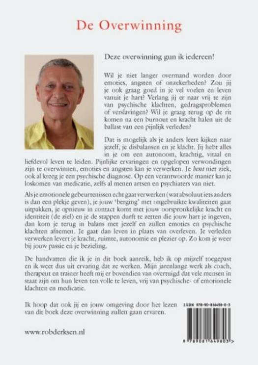 De handvatten die ik je in dit boek aanreik, heb ik op mijzelf toegepast en weet daarom uit ervaring dat ze werken. Mijn jarenlange werk als coach, therapeut en trainer doet mij vol overtuiging vaststellen dat veel meer mensen in staat zijn hun emoties en disbalansen te overwinnen en vrij van psychische klachten en medicatie hun leven kunnen leven.