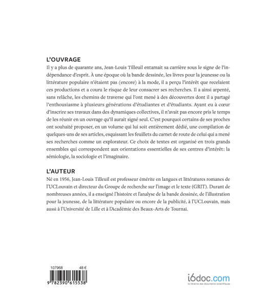 Une sélection d'articles de Jean-Louis Tilleuil, chercheur spécialisé dans l'étude de la bande dessinée, de la littérature de jeunesse et de la littérature populaire. Les textes réunis par ses proches sont organisés en trois ensembles correspondant aux axes essentiels de ses travaux : la sémiologie, la sociologie et l'imaginaire.